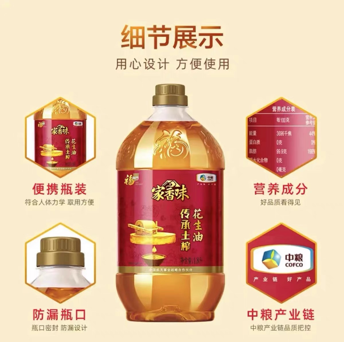 • 中糧福臨門 傳承土榨花生油 1.8L